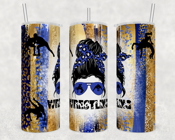 Wrestling Gold Blue Wrestling Mom Glitter | Tumbler